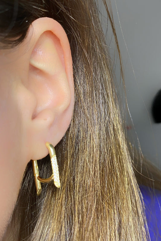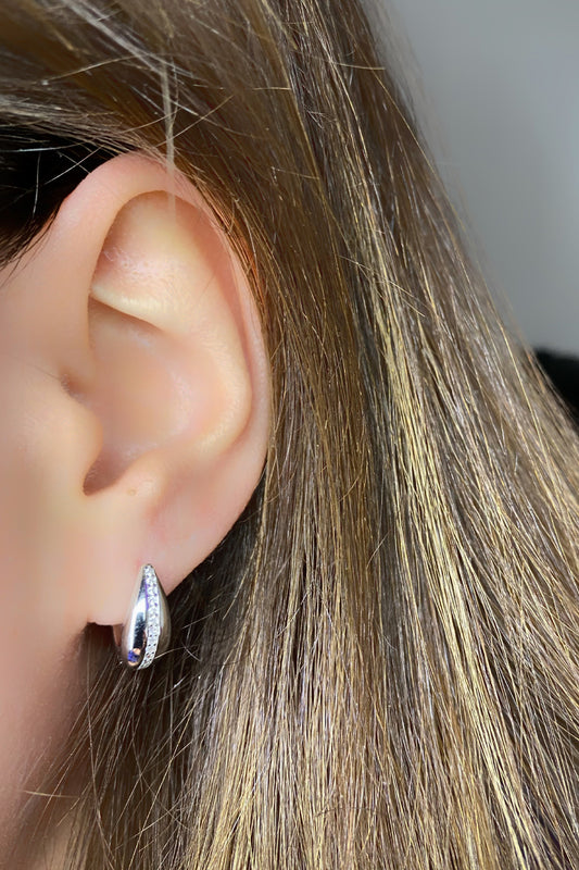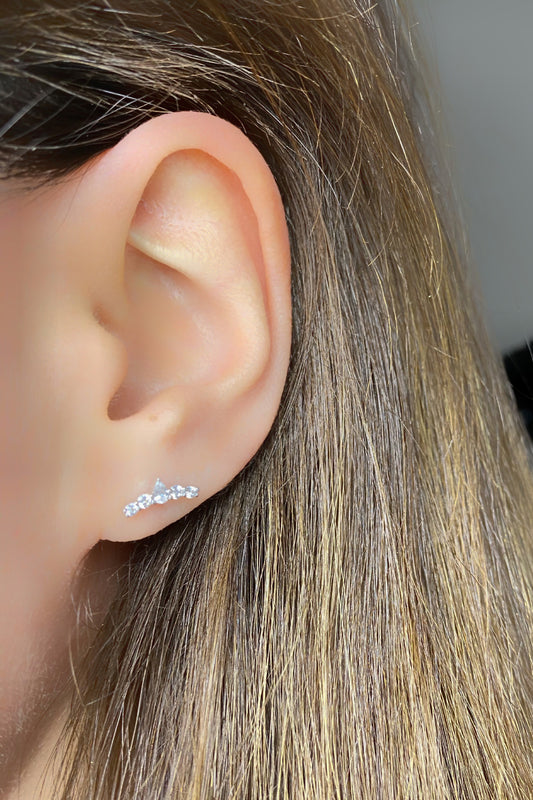 Yarısı Taşlı Kare Gümüş Kıkırdak Küpe