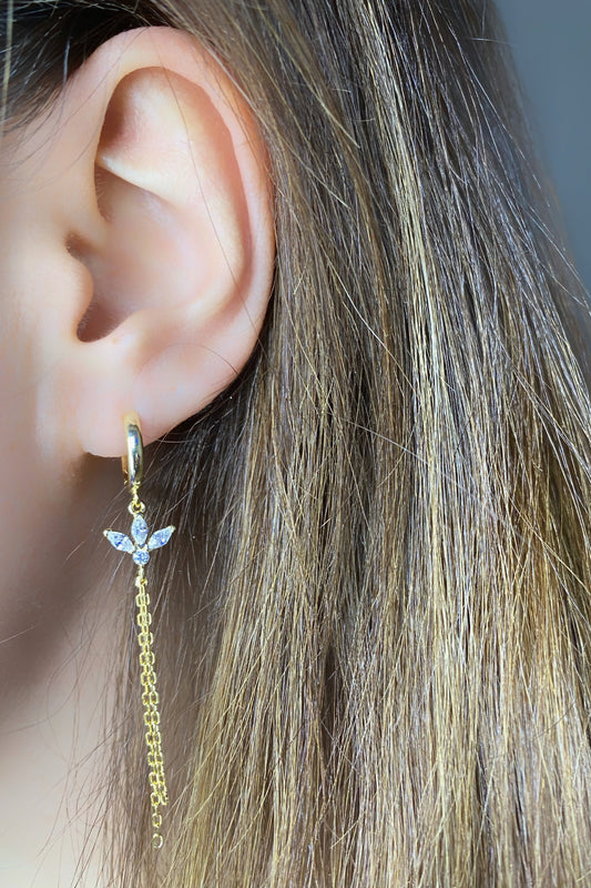 İki Zincir Sallantılı Taşlı Lotus Gümüş Küpe