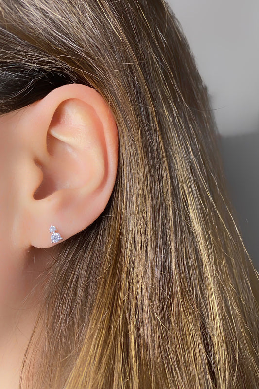 Küçük Büyük İki Taş Gümüş Çivili Küpe