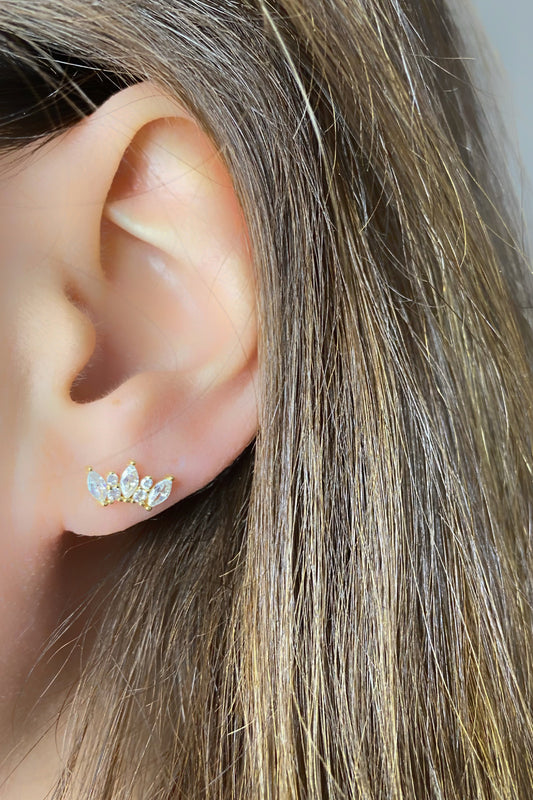 Tek Markiz Ve İki Taş Detay Yay Gümüş Çivili Küpe