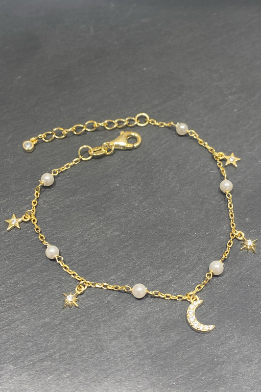 İnci Detay Yıldız Kutupyıldızı Ay Gümüş Bileklik