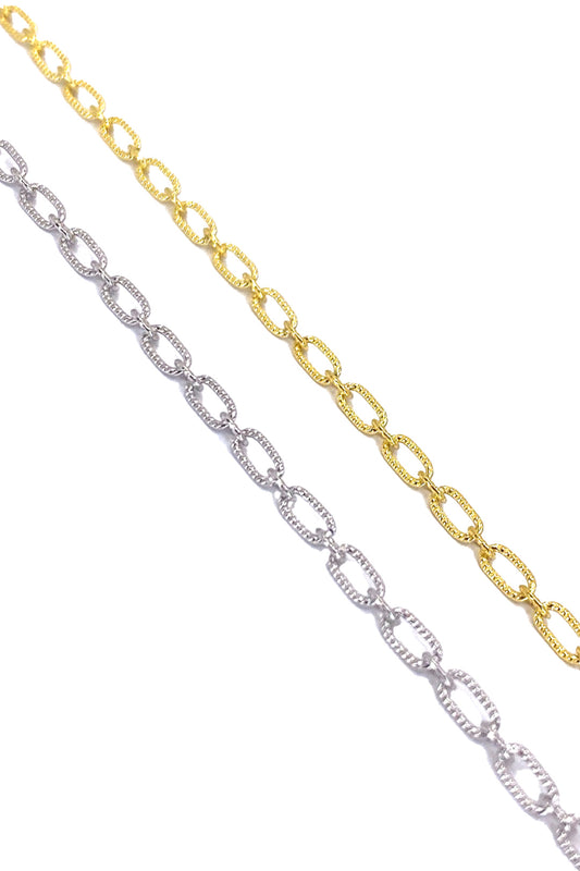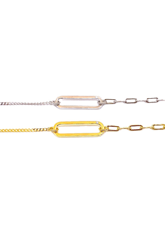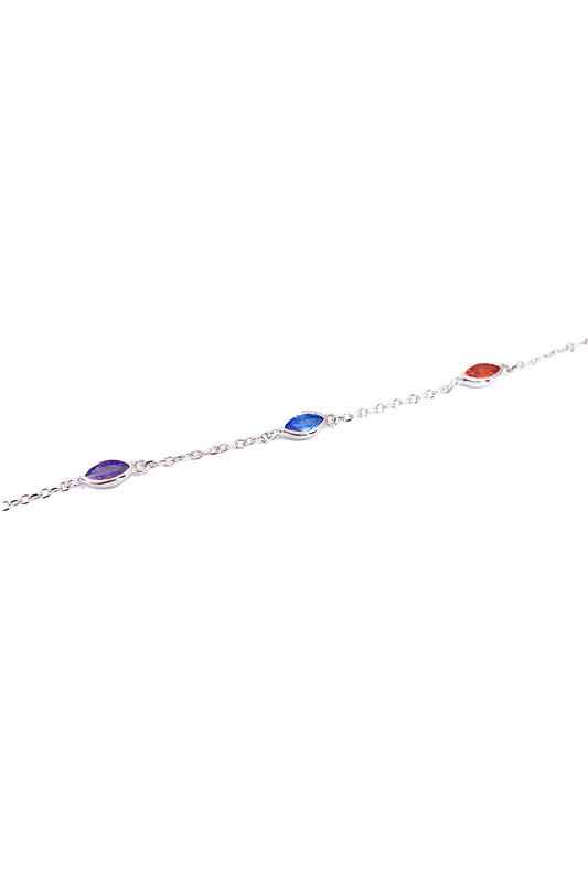 Oval Üstü Taş Detay Geo Zincir Gümüş Bileklik