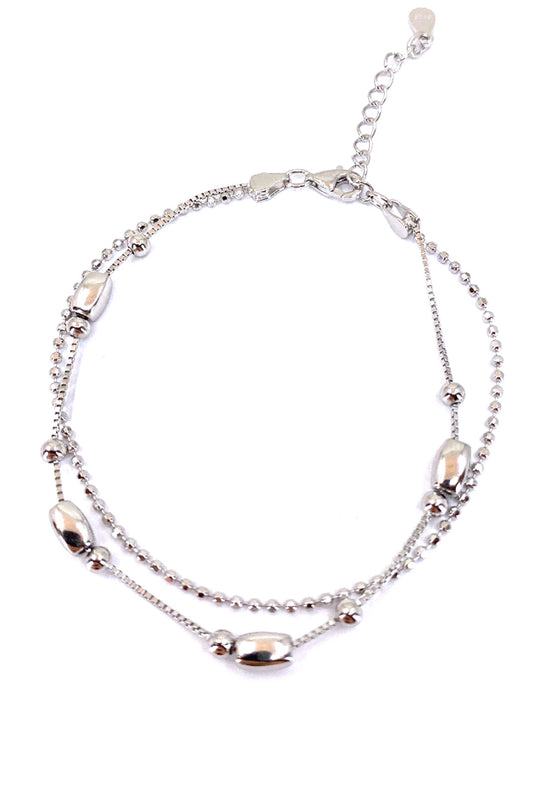 Taşsız Fasulye Ve Top İki Sıra Gümüş Bileklik
