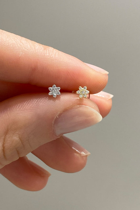 Mini Beyaz Papatya Gümüş Çivili Küpe