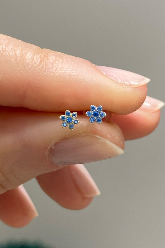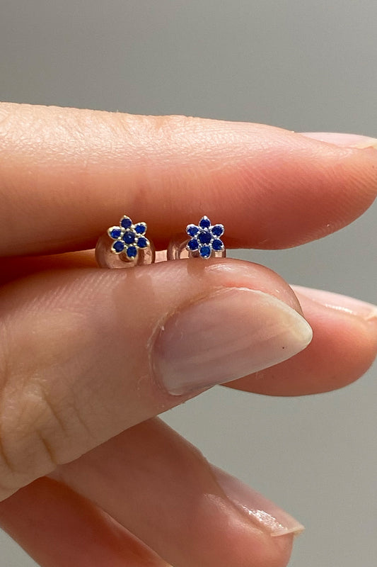 Mini Lacivert Papatya Gümüş Çivili Küpe