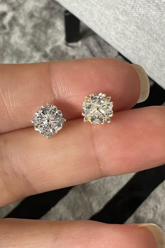 Parıltılı Dört Kalp Çiçek Gümüş Çivili Küpe