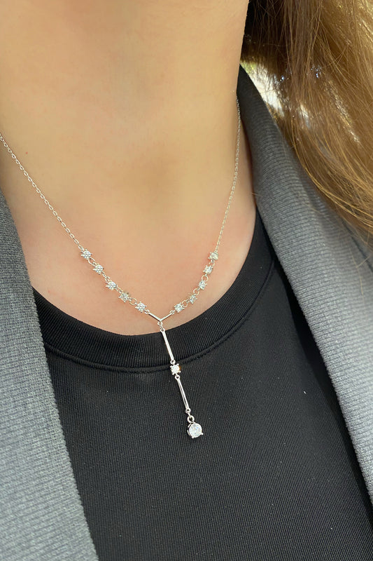 Mix Taş Ve Çubuk Detay Gümüş Y Kolye
