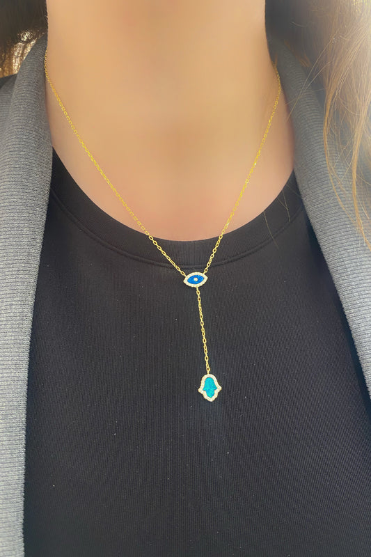 Turkuaz Detay Göz El Ve Ay Gümüş Kolye