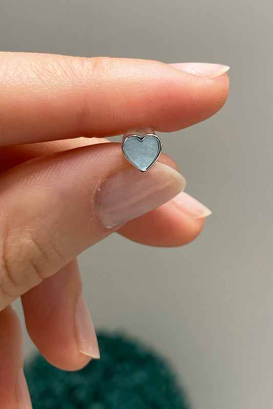 Mavi Mineli Kalp Gümüş Çivili Küpe