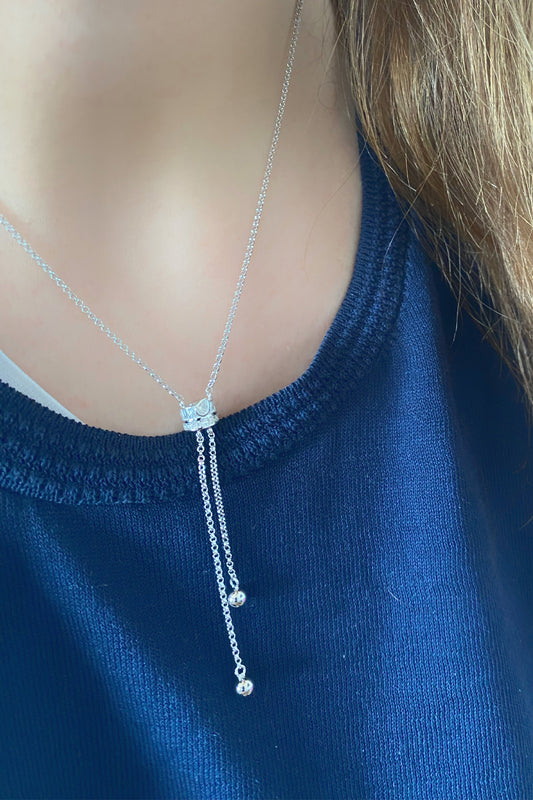 Mini Damla Ve Taş Sıralı Silindir Detay Gümüş Y Kolye