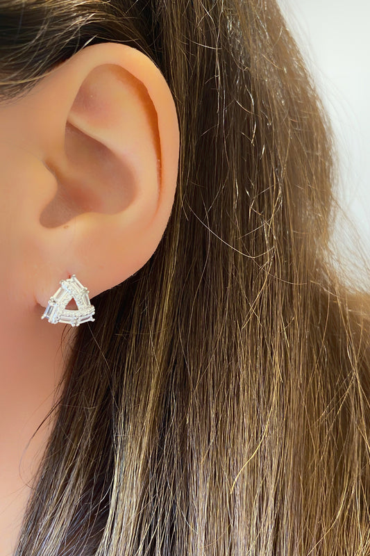 Baget Ve Taş Detay Üçgen Gümüş Çivili Küpe