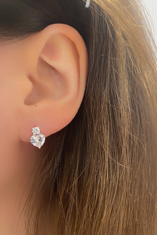 Beyaz Tektaş Ve Kalp Gümüş Çivili Küpe