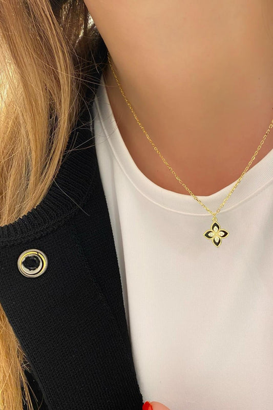 Üç Markiz Çiçek Ve Dal Detay Gümüş Kolye