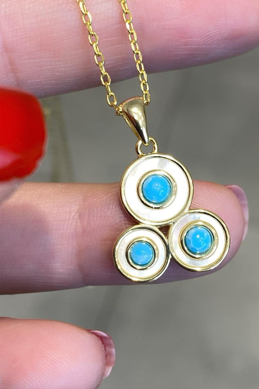 Üç Turkuaz Ve Sedef Yuvarlak Gümüş Kolye