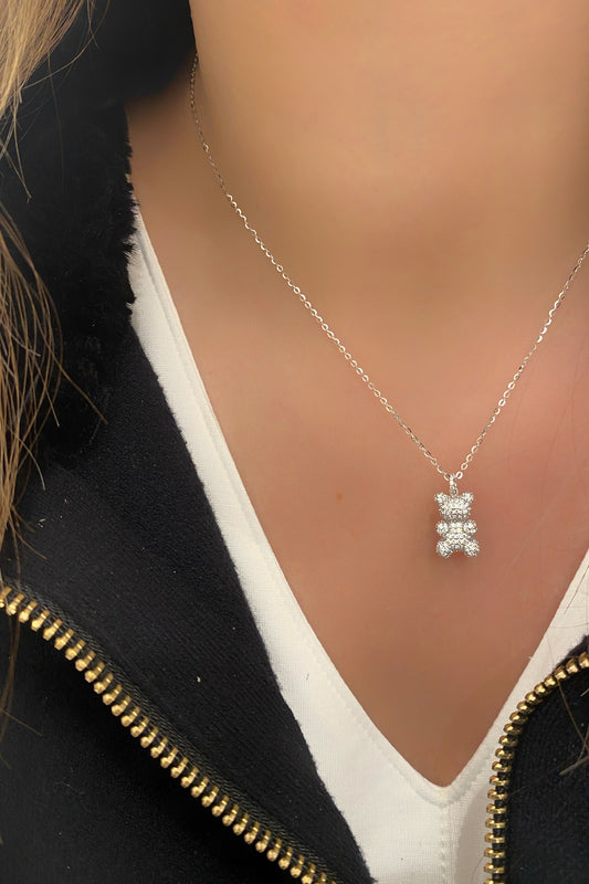 Gömülü Kalp Taş Detay Gümüş Kolye