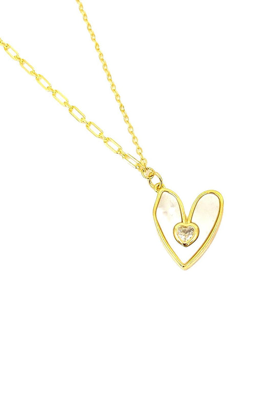 Sedef Kalp Geo Zincir Gümüş Kolye