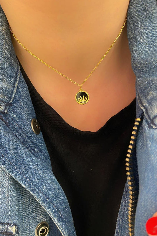 Siyah Sedef Güneş Göz Gümüş Kolye