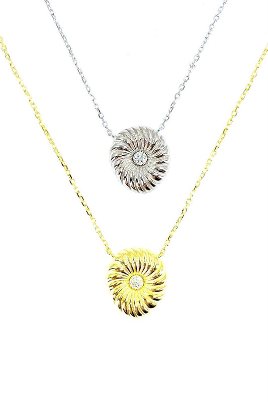 Ortası Taş Detay Salyangoz Gümüş Kolye