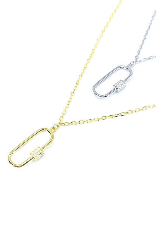 Taşlı Kanca Kilit Gümüş Kolye