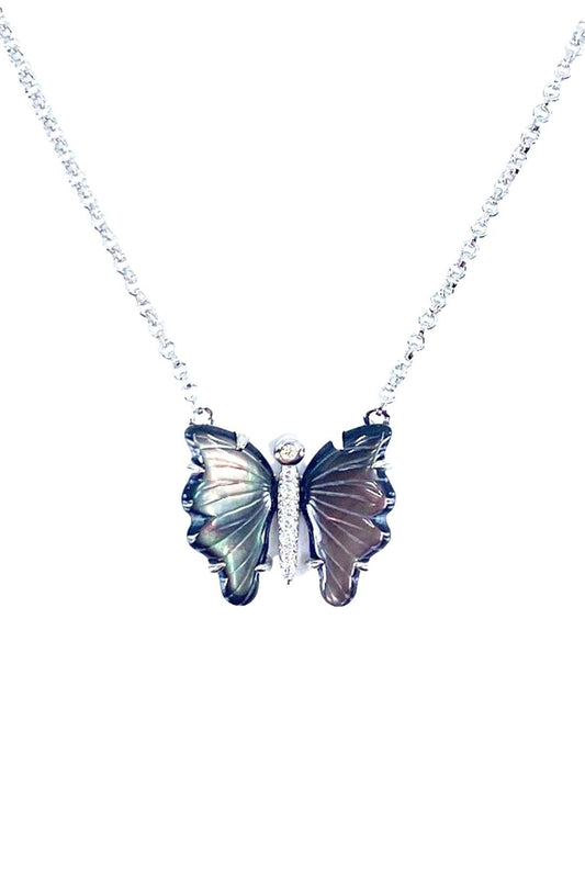 Siyah Sedef Kelebek Gümüş Kolye