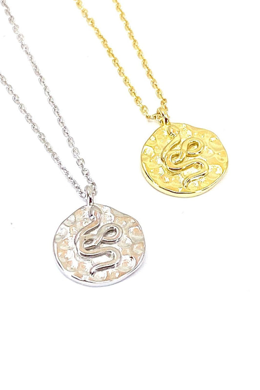 Taşsız Dövme Yuvarlak Yılan Detay Gümüş Kolye