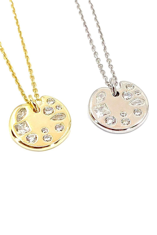 On Taş Detay Yuvarlak Gümüş Kolye
