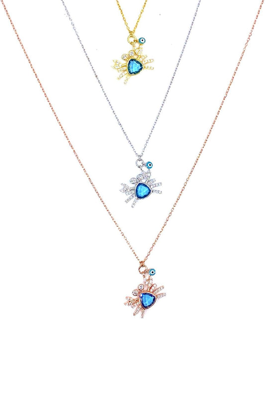 Turkuaz Ve Taşlı Kalp Gümüş Kolye
