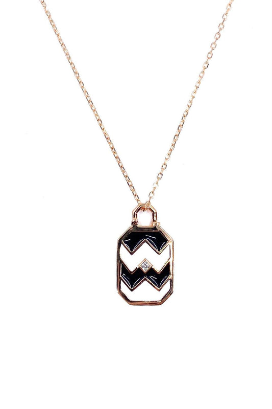 Siyah Beyaz Dalgalı Kilit Gümüş Kolye