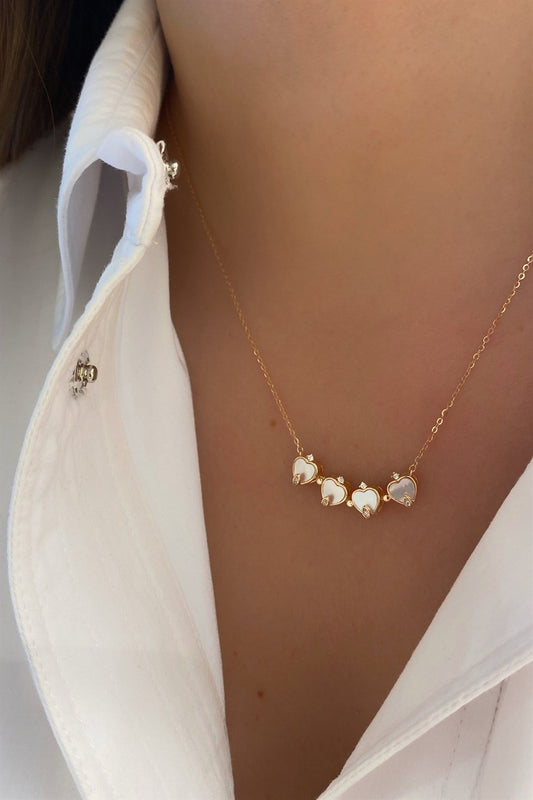 Sedef Kalp Yonca Çiçek Gümüş Kolye