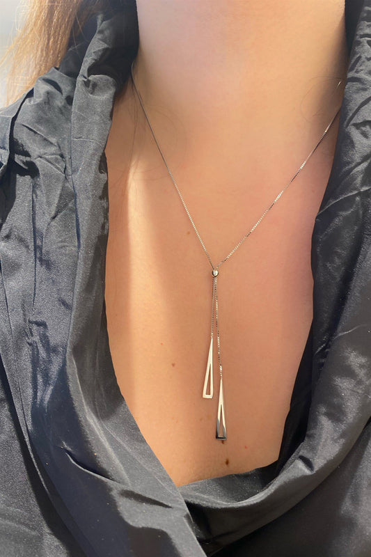 Üçgen Detay Asansör Gümüş Kolye