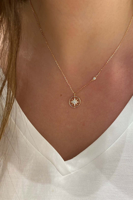 Pusula Ve Tektaş Gümüş Kolye