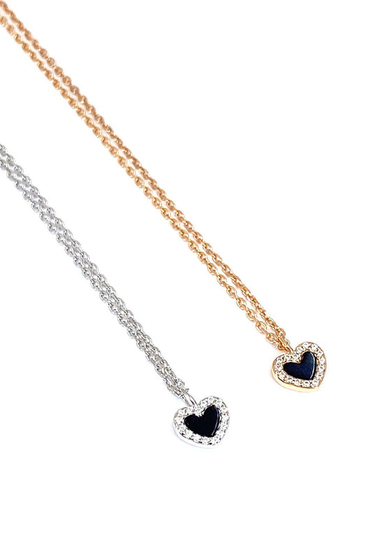 Siyah Sedef Taşlı Kalp Gümüş Kolye