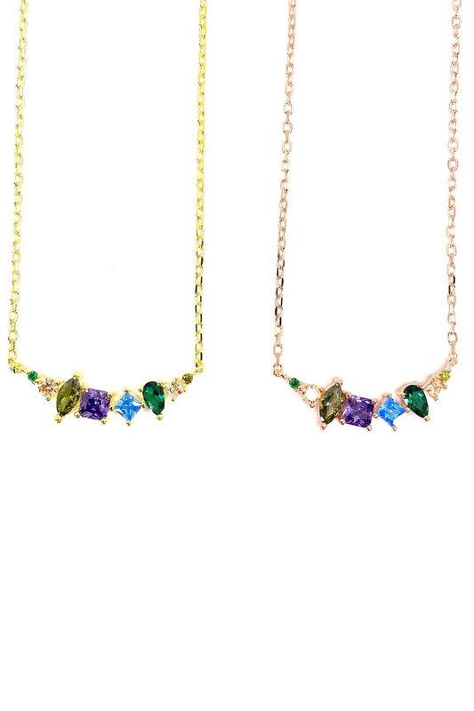 Rainbow Baget Markiz Dağınık Gümüş Kolye