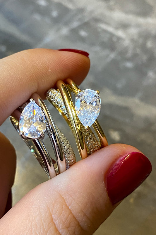 İki Sıra Taşlı Ve Taşsız Damla Detay Gümüş Yüzük