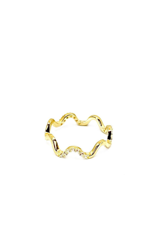 Aralıklı Taşlı İnce Dalga Gümüş Yüzük