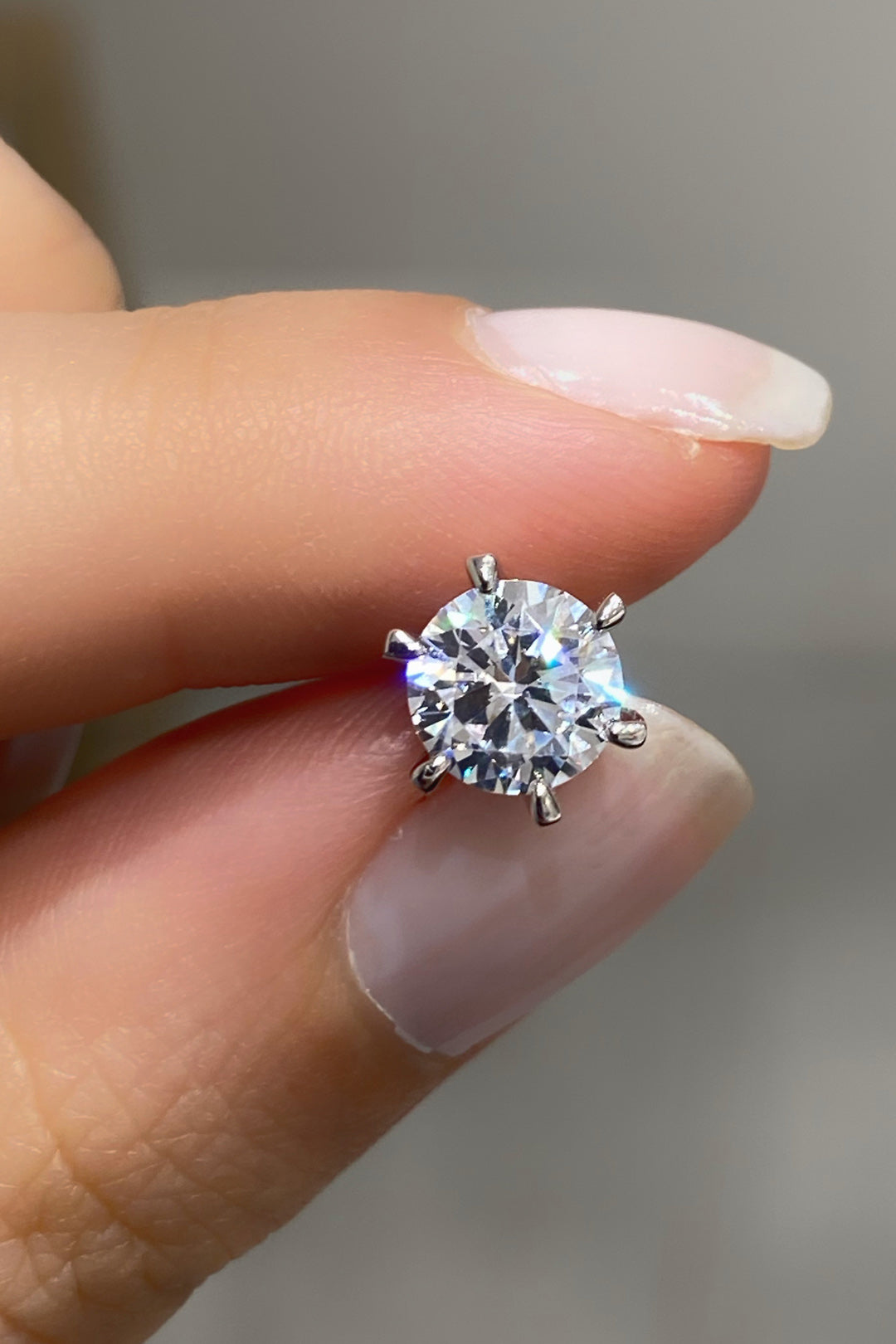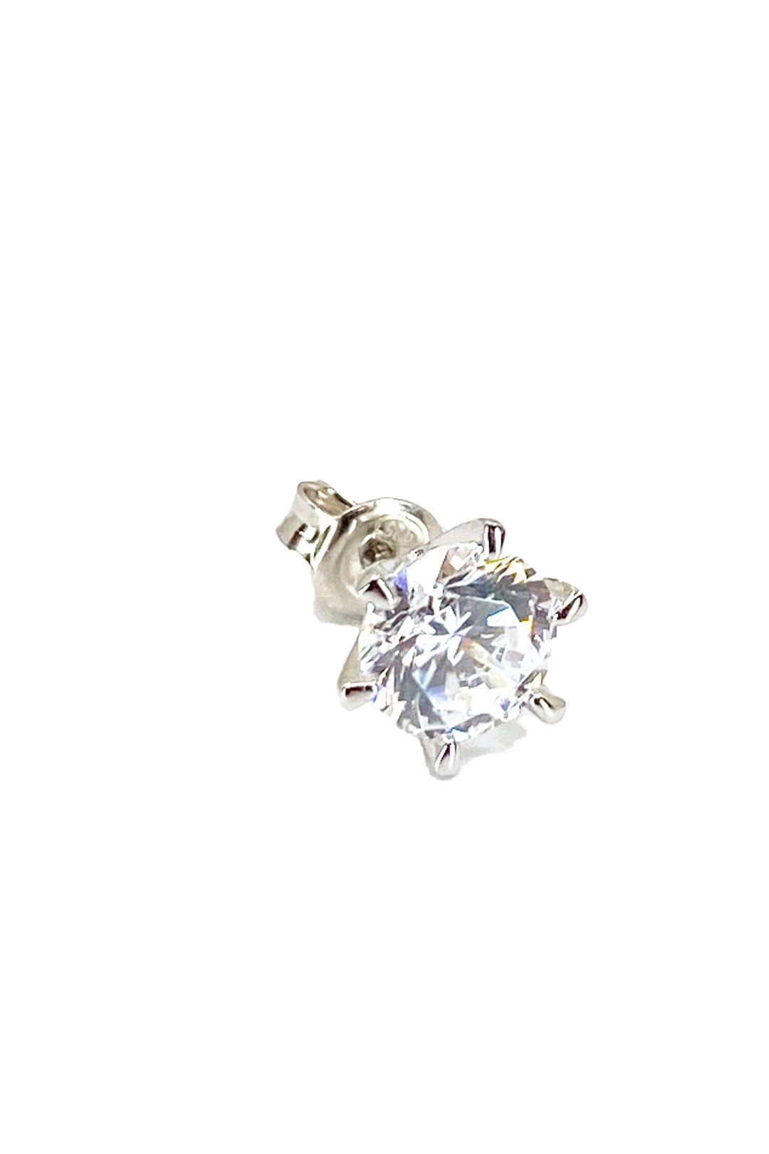 Altı Tırnaklı Tektaş Gümüş Çivili Küpe