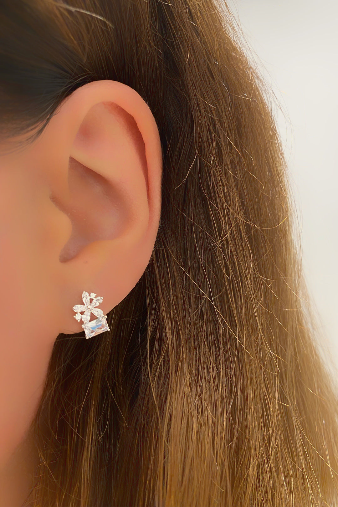 Aqua Baget Ve Beyaz Papatya Gümüş Çivili Küpe
