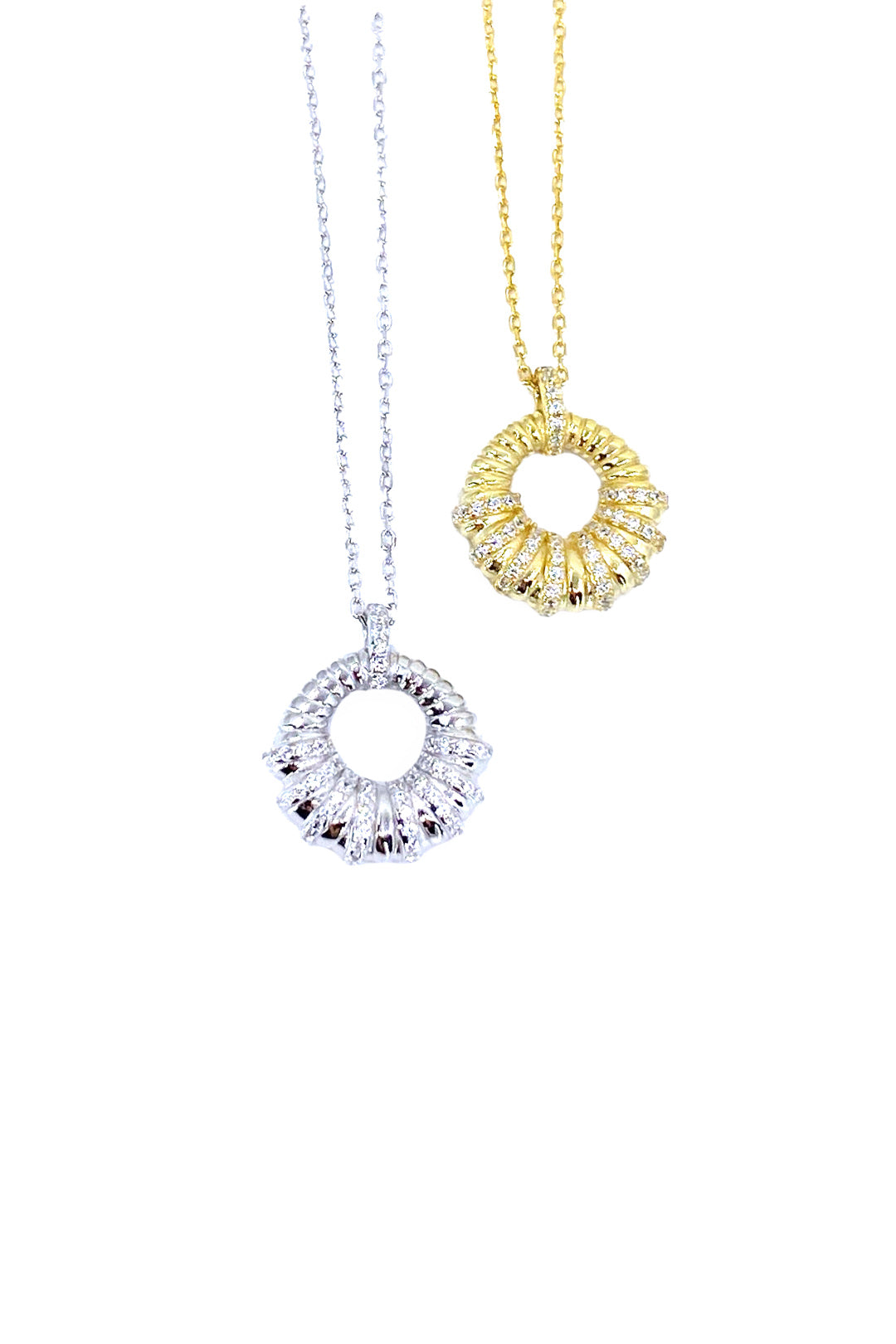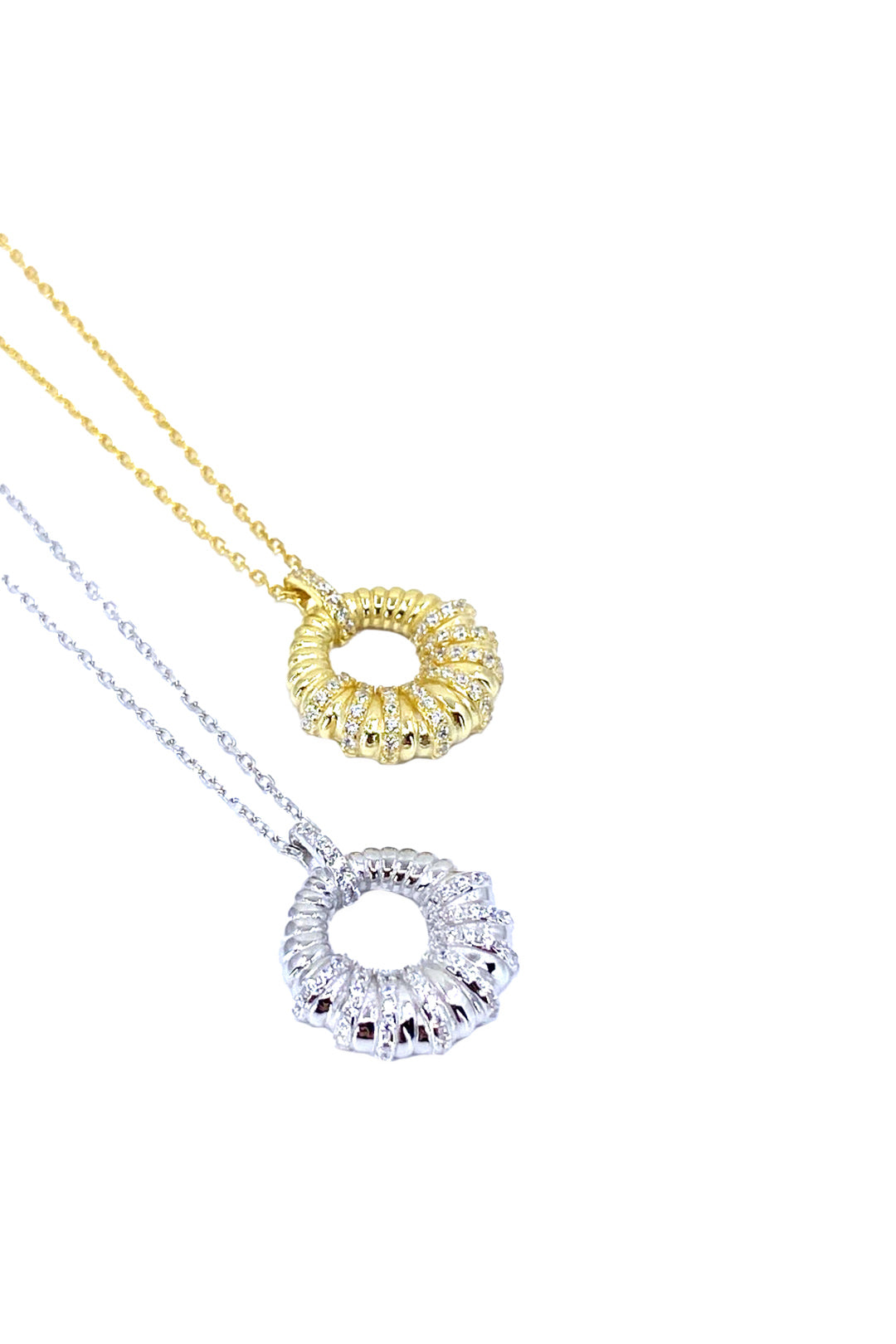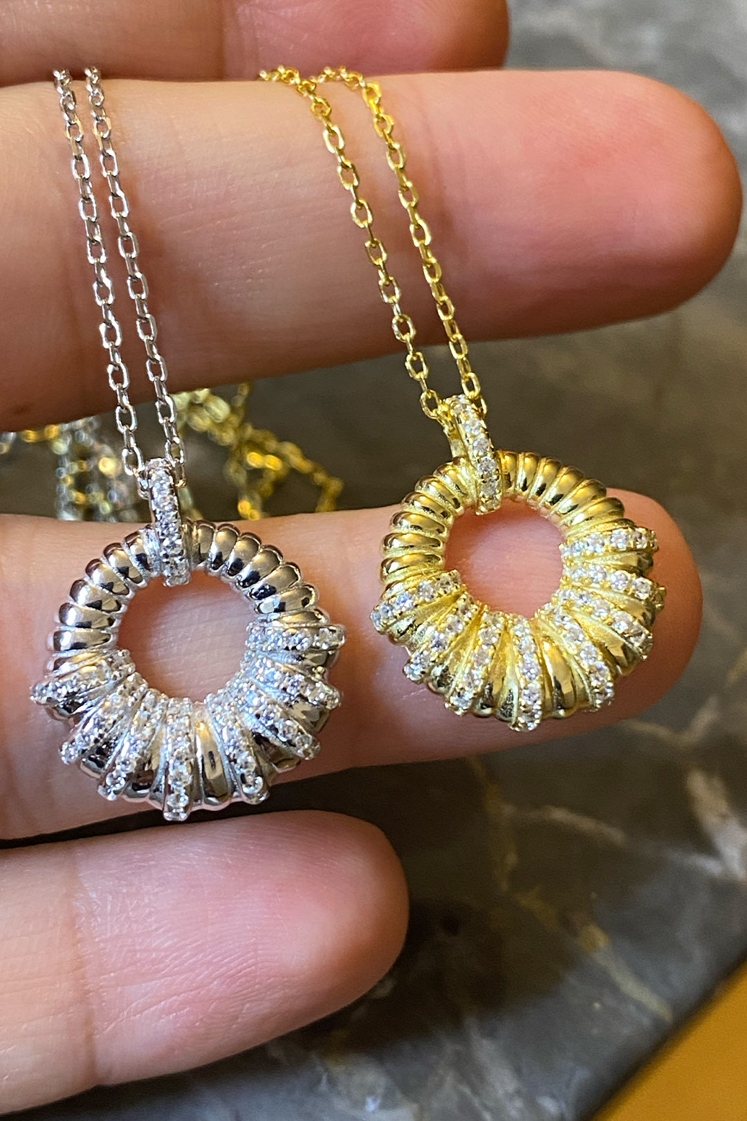 Araları Taş Detay Salyangoz Çember Gümüş Kolye