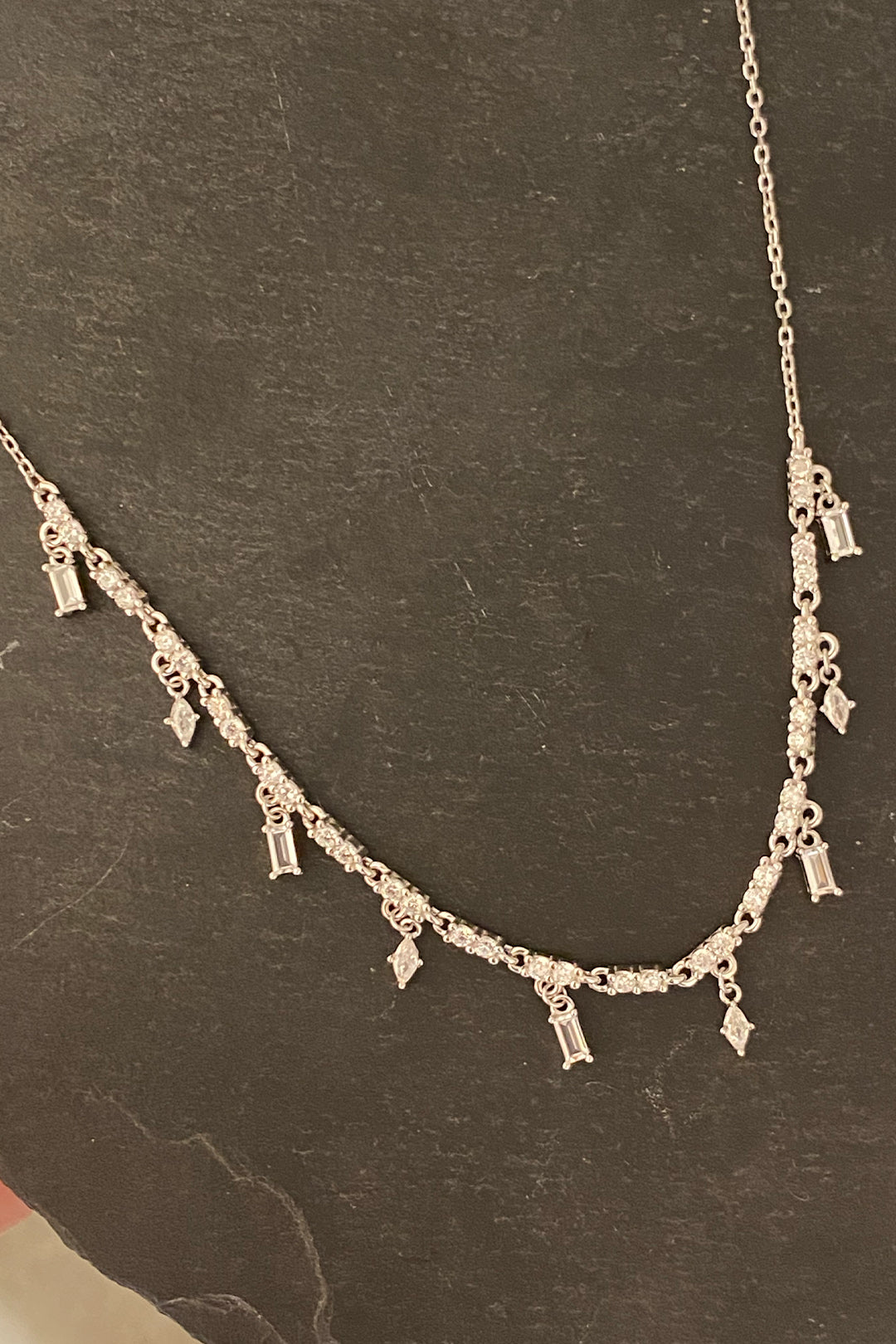 Baget ve Yuvarlak Taşlı Suyolu Gümüş Kolye