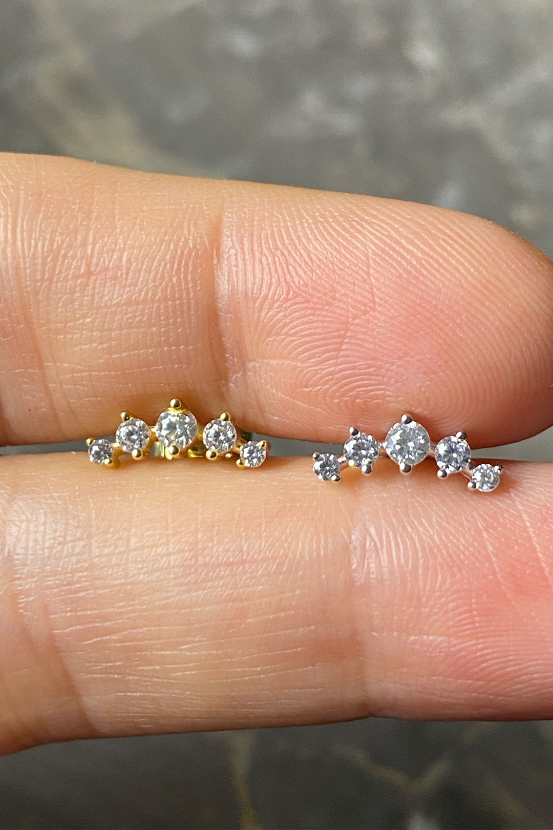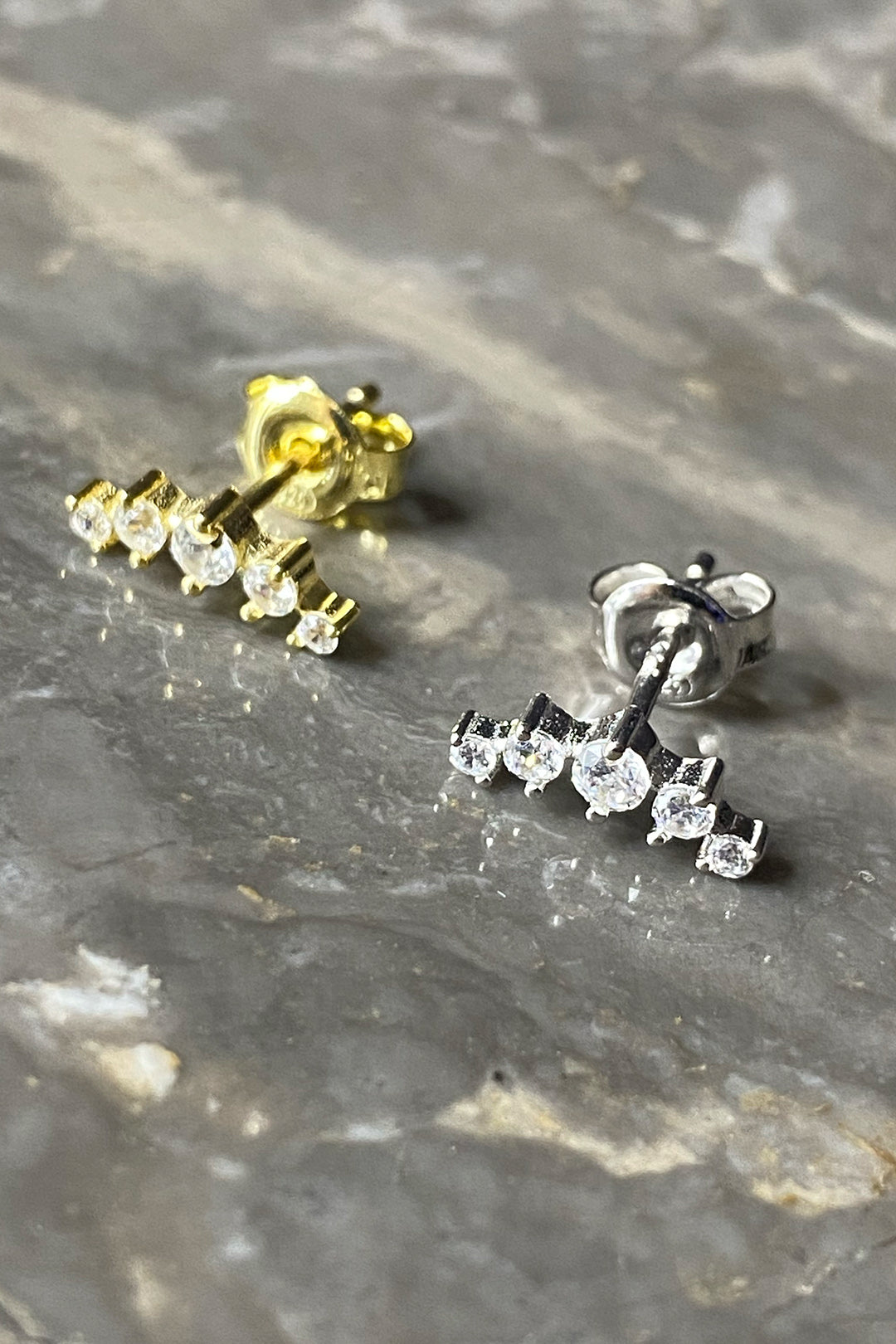 Beyaz Beş Mix Taş Yay Gümüş Çivili Küpe