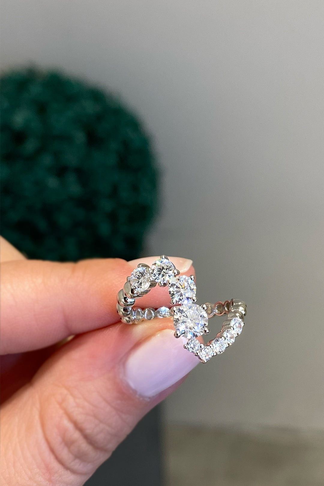 Beyaz Dört Mix Taş Top Top Gümüş Yüzük