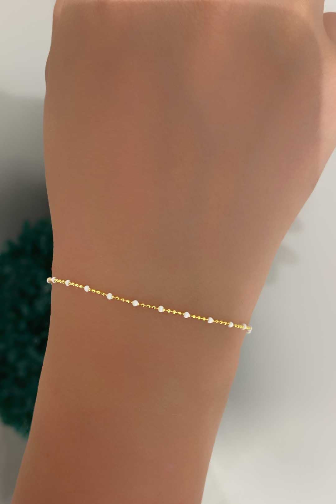 Beyaz Mine Detay Top Zincir Gümüş Bileklik