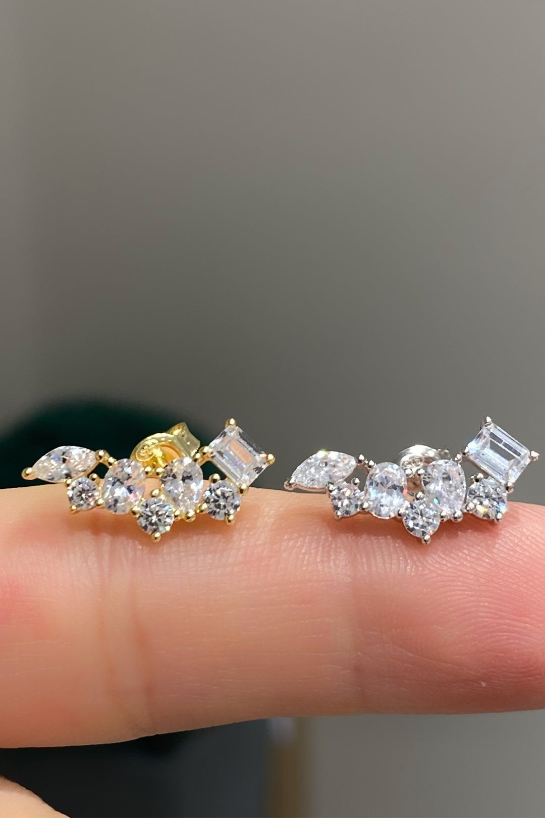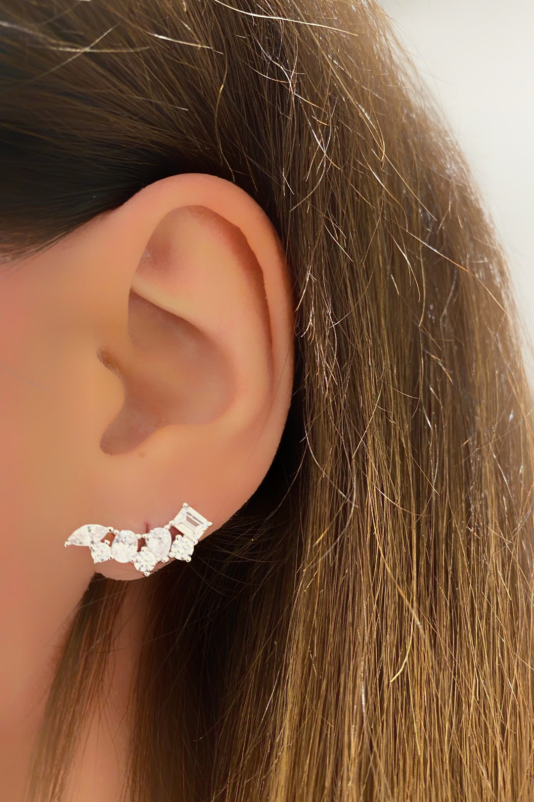 Beyaz Mix Taşlı Yay Gümüş Çivili Küpe