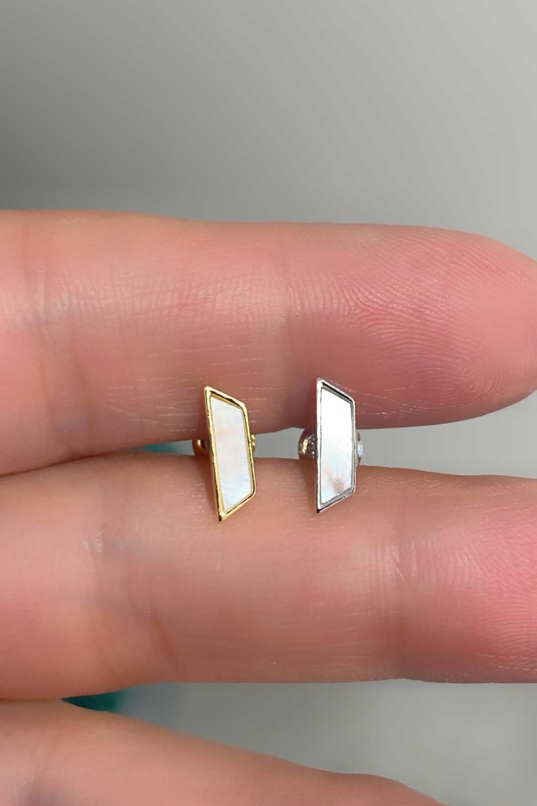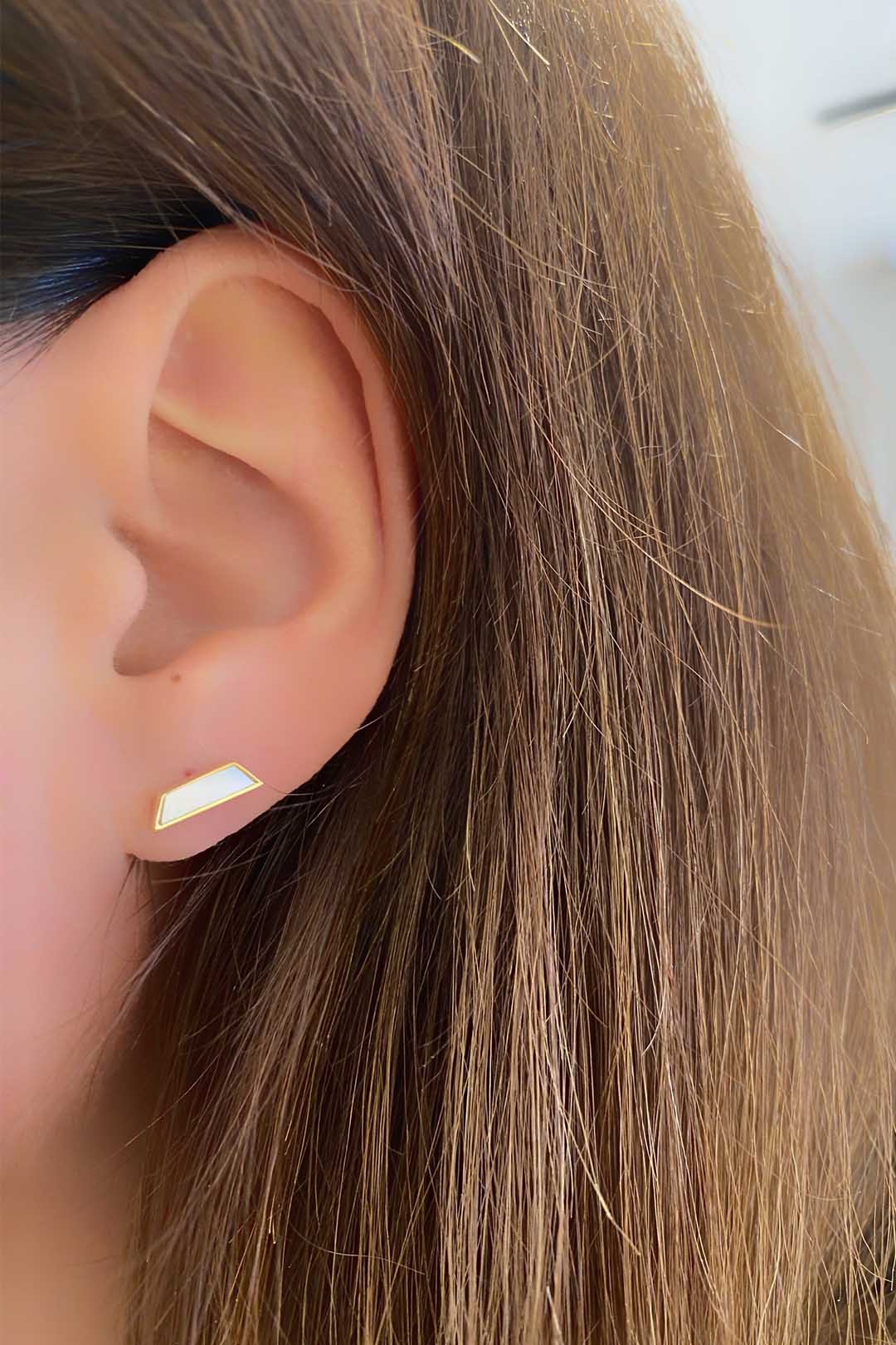 Beyaz Sedef Yatay Köşegenli Gümüş Çivili Küpe