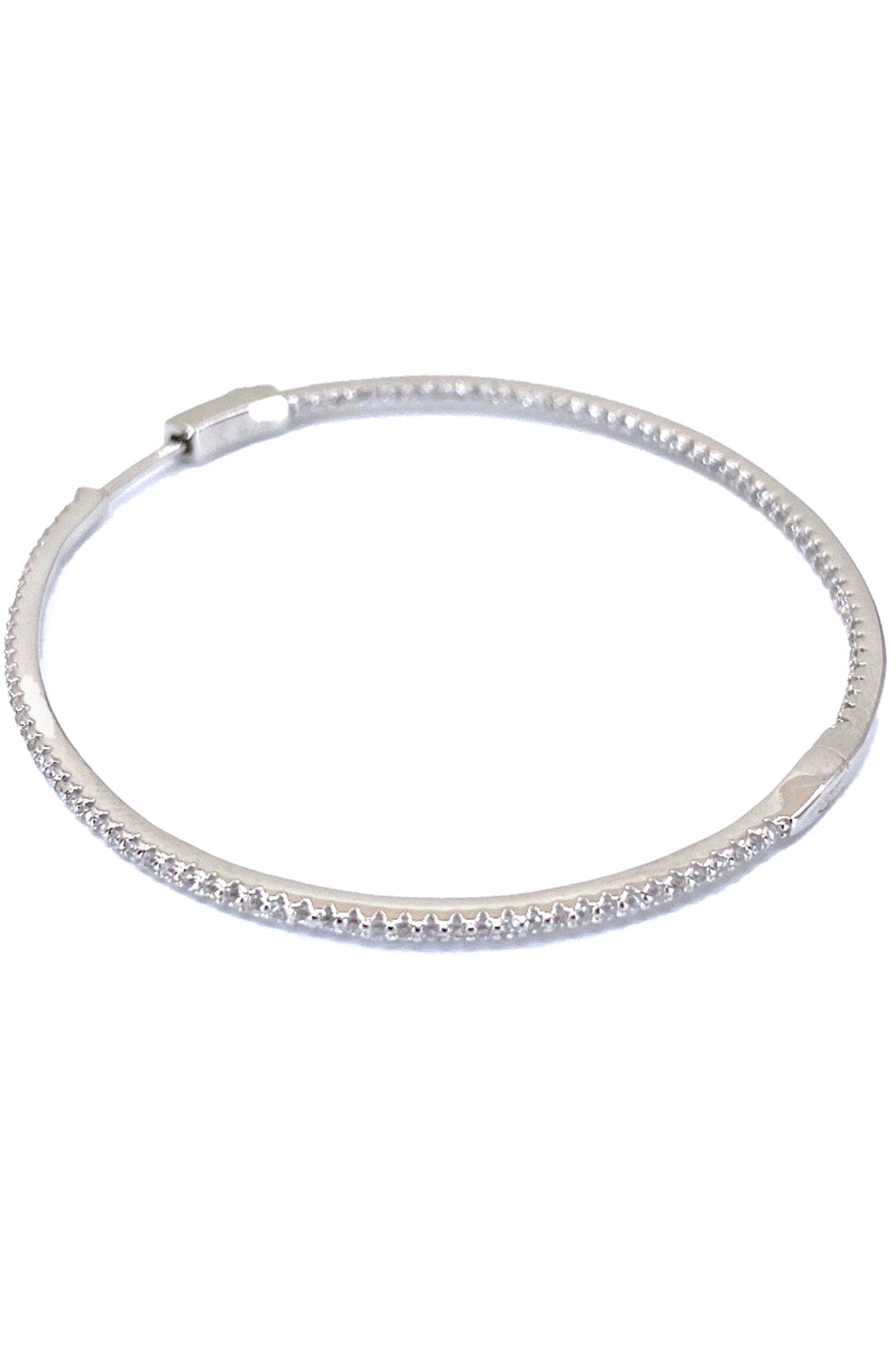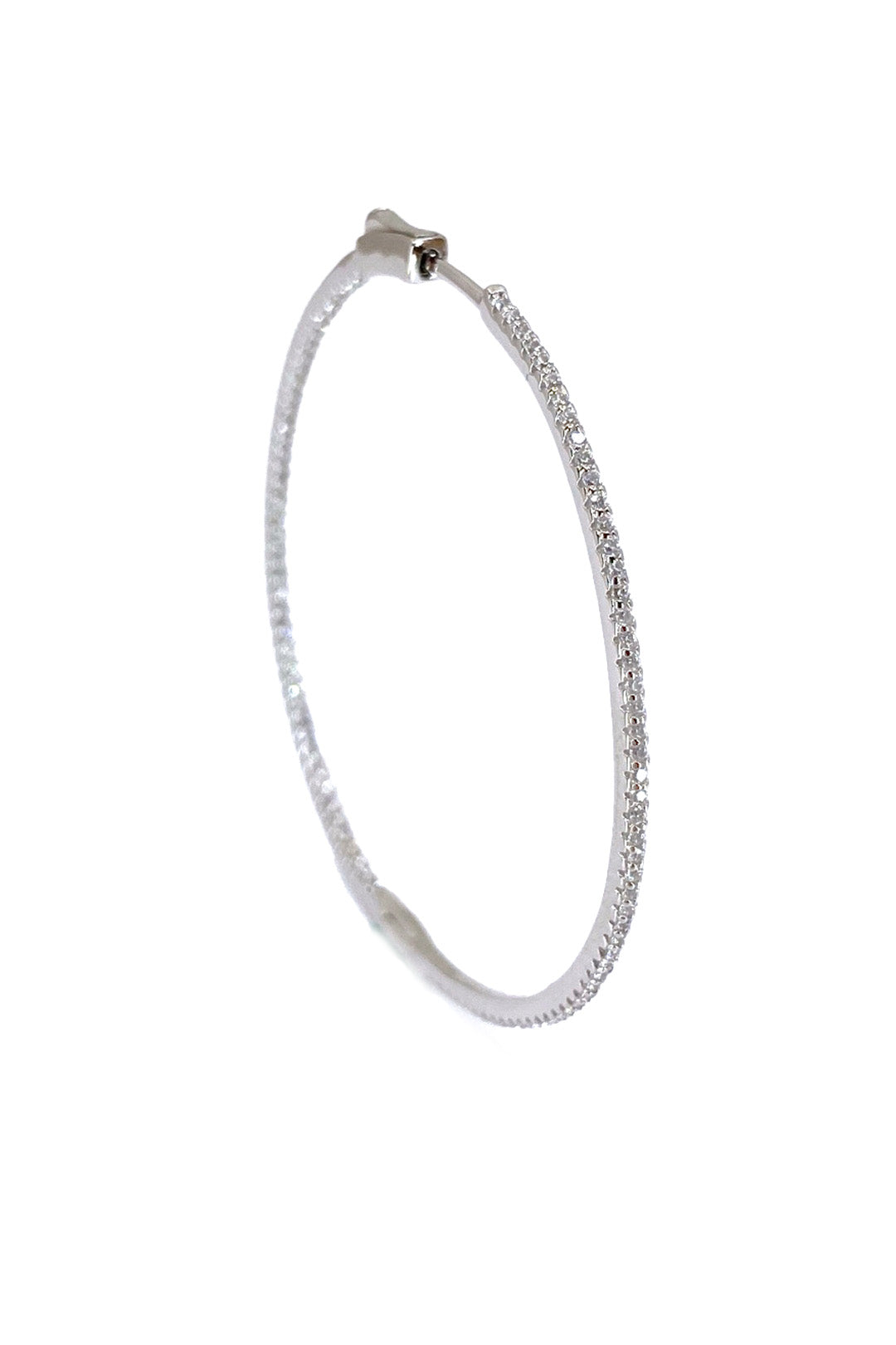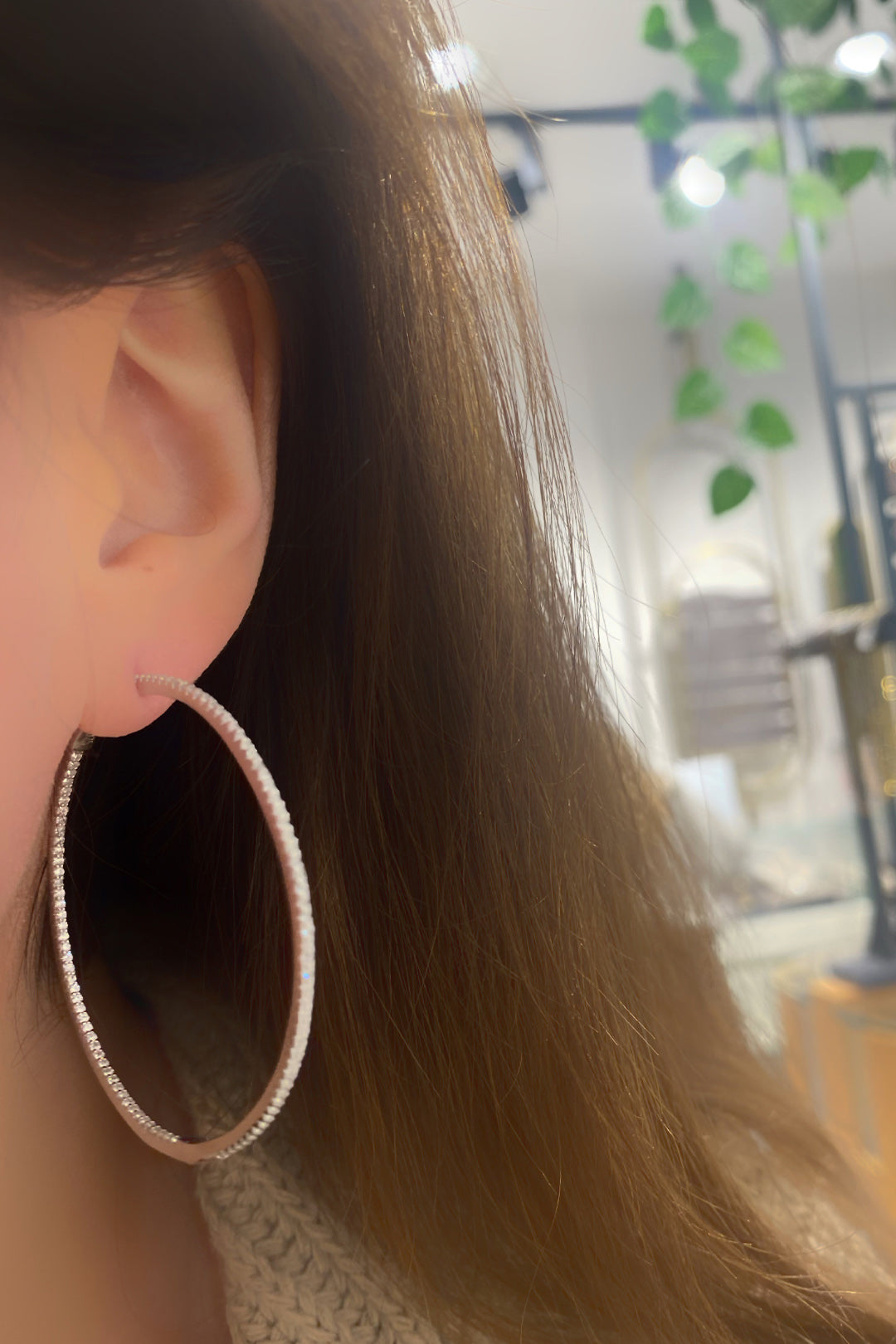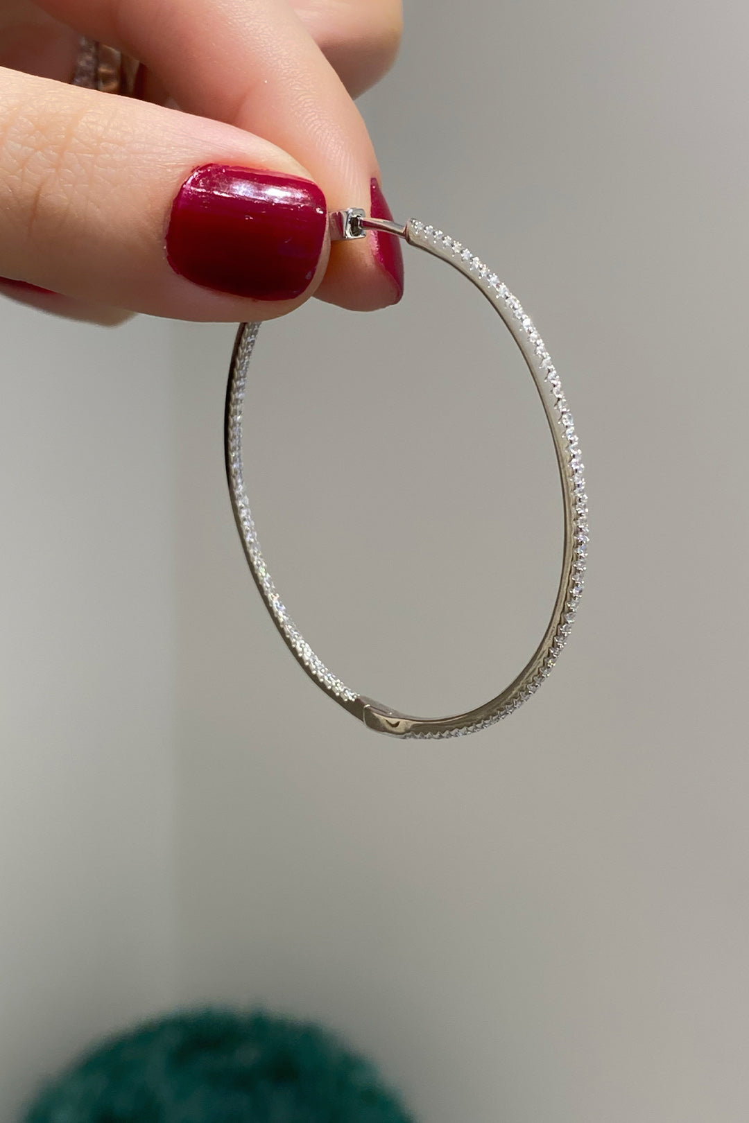 Beyaz Taşlı İnce Gümüş Halka Küpe 5.00 Cm