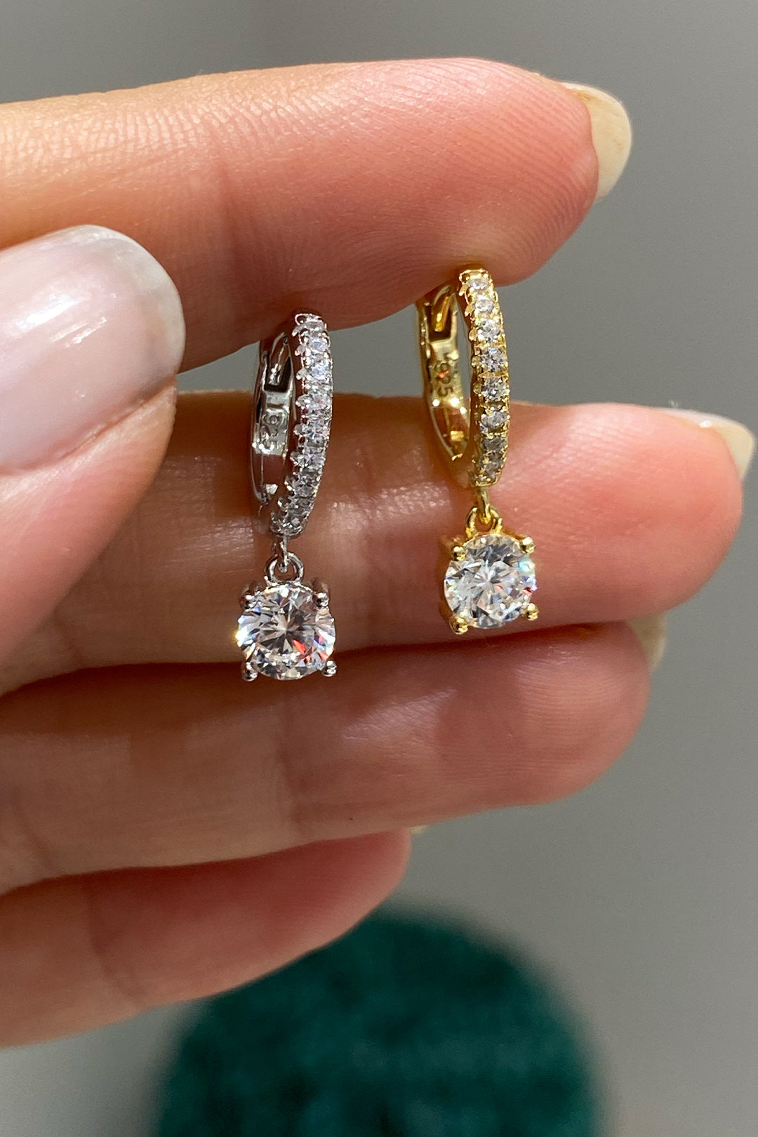 Büyük Tektaş Sallantılı Gümüş Küpe