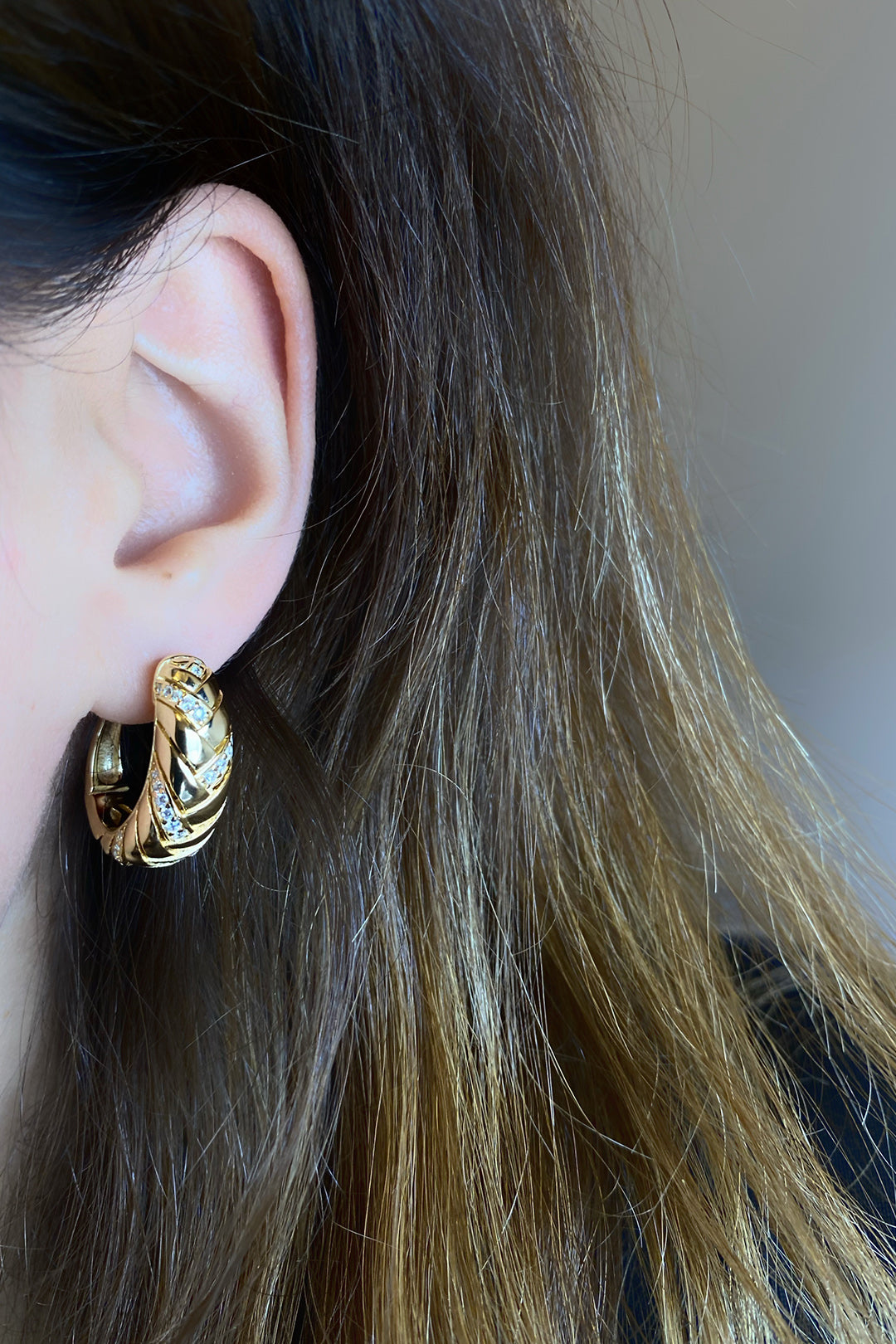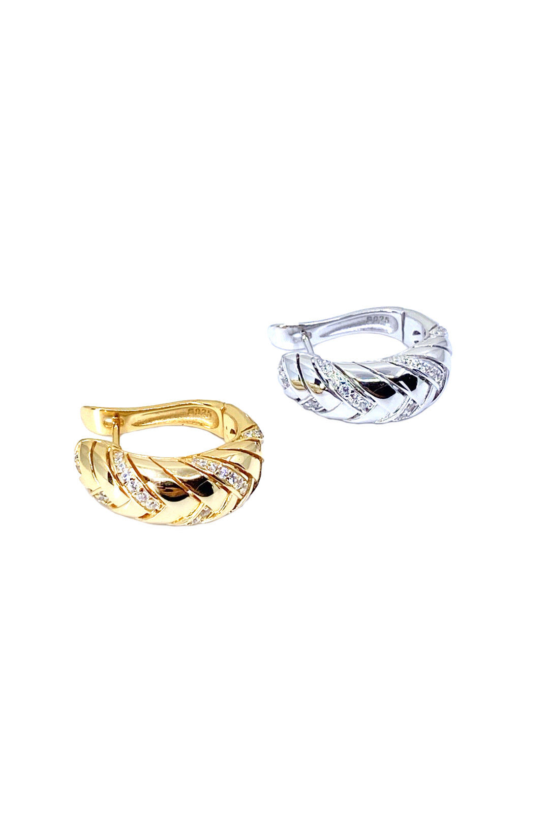Çapraz Desen Taş Detay Pimli Gümüş Oval Küpe