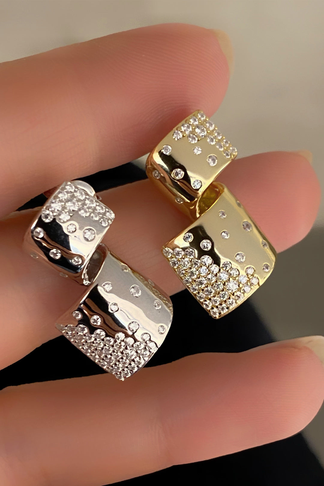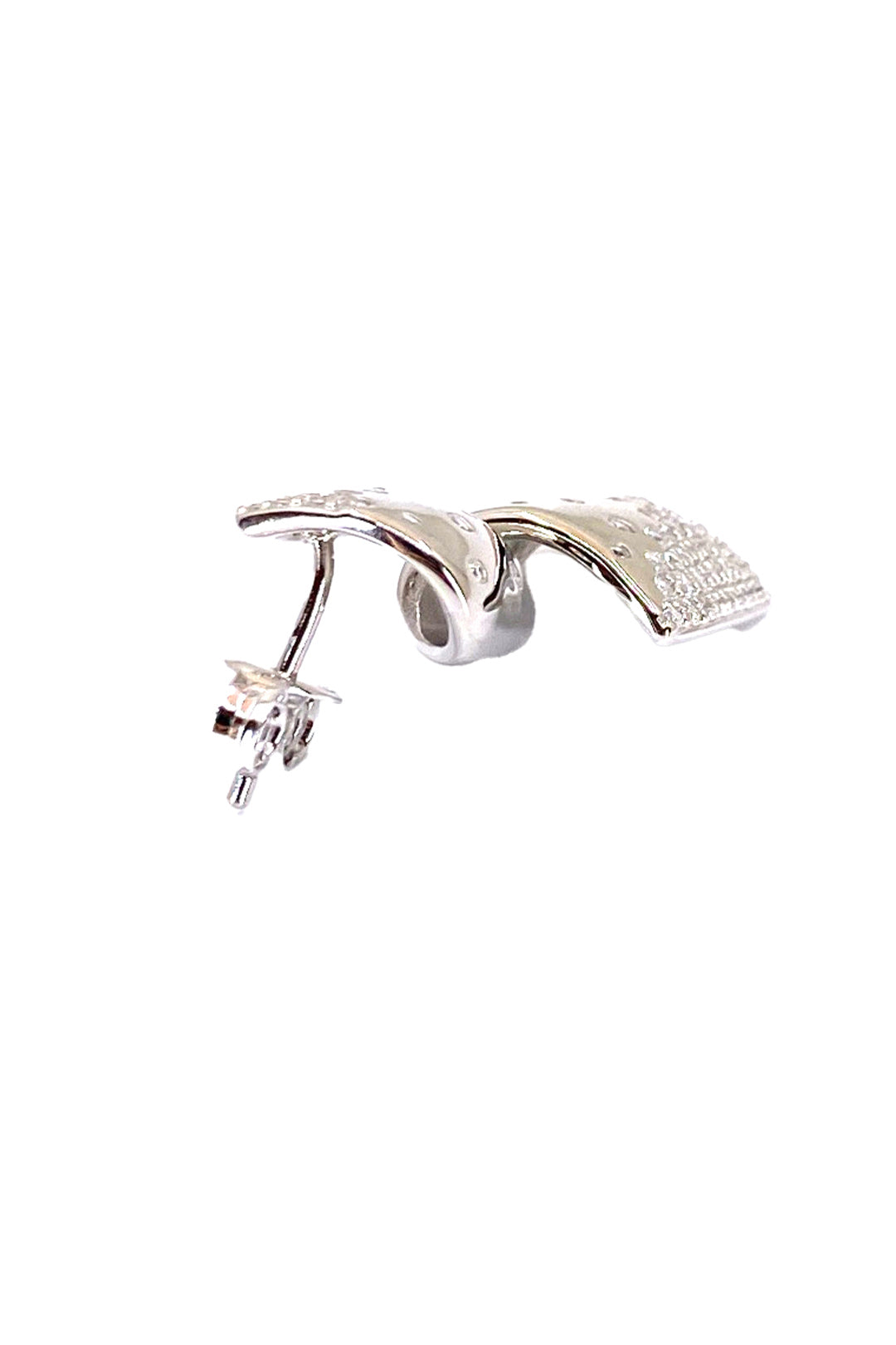 Dağınık Gömülü Taş Kıvrımlı Gümüş Küpe