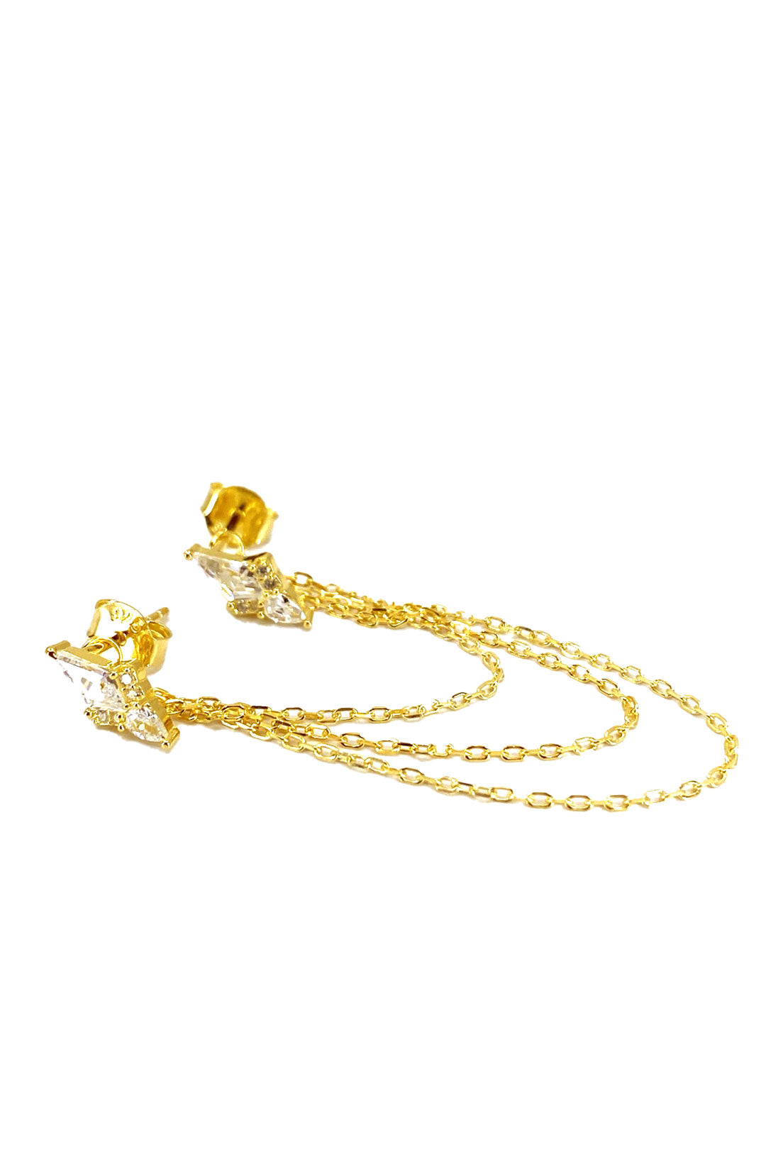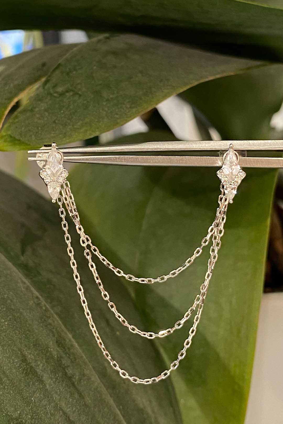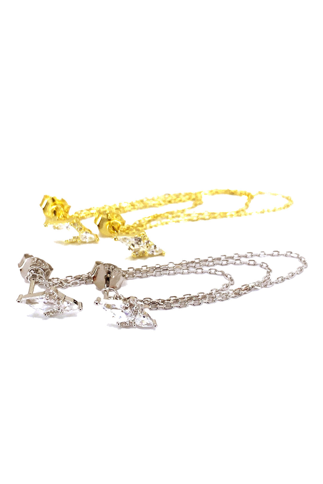 Damla Karo Ve İki Taş Boğum İkili Gümüş Çivili Küpe