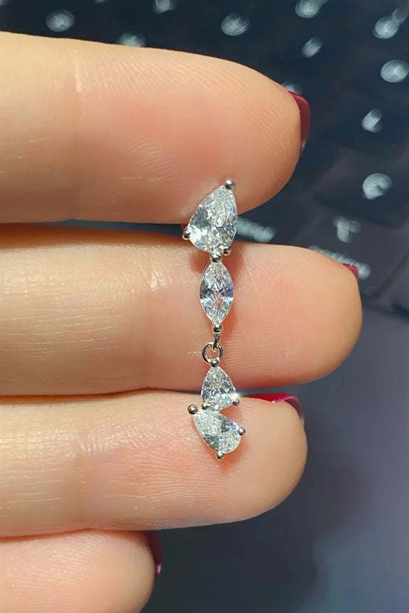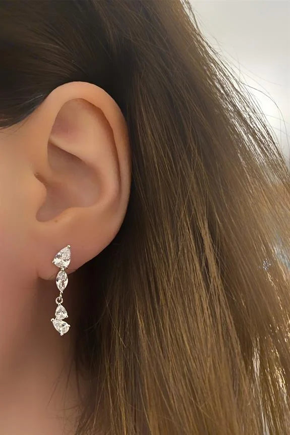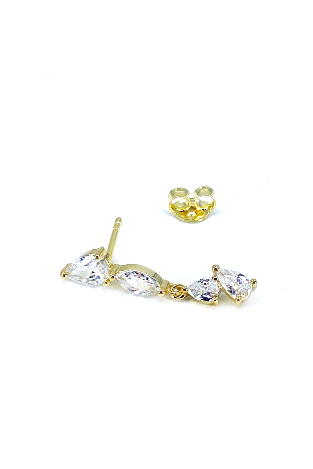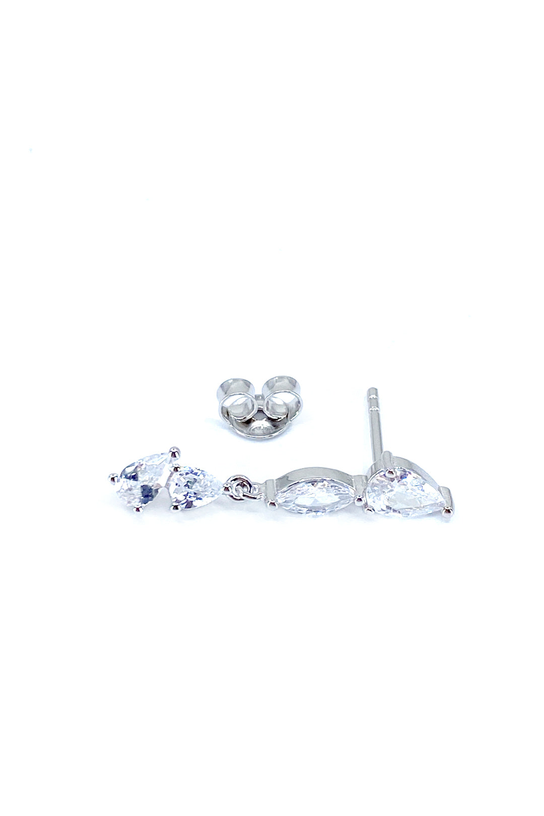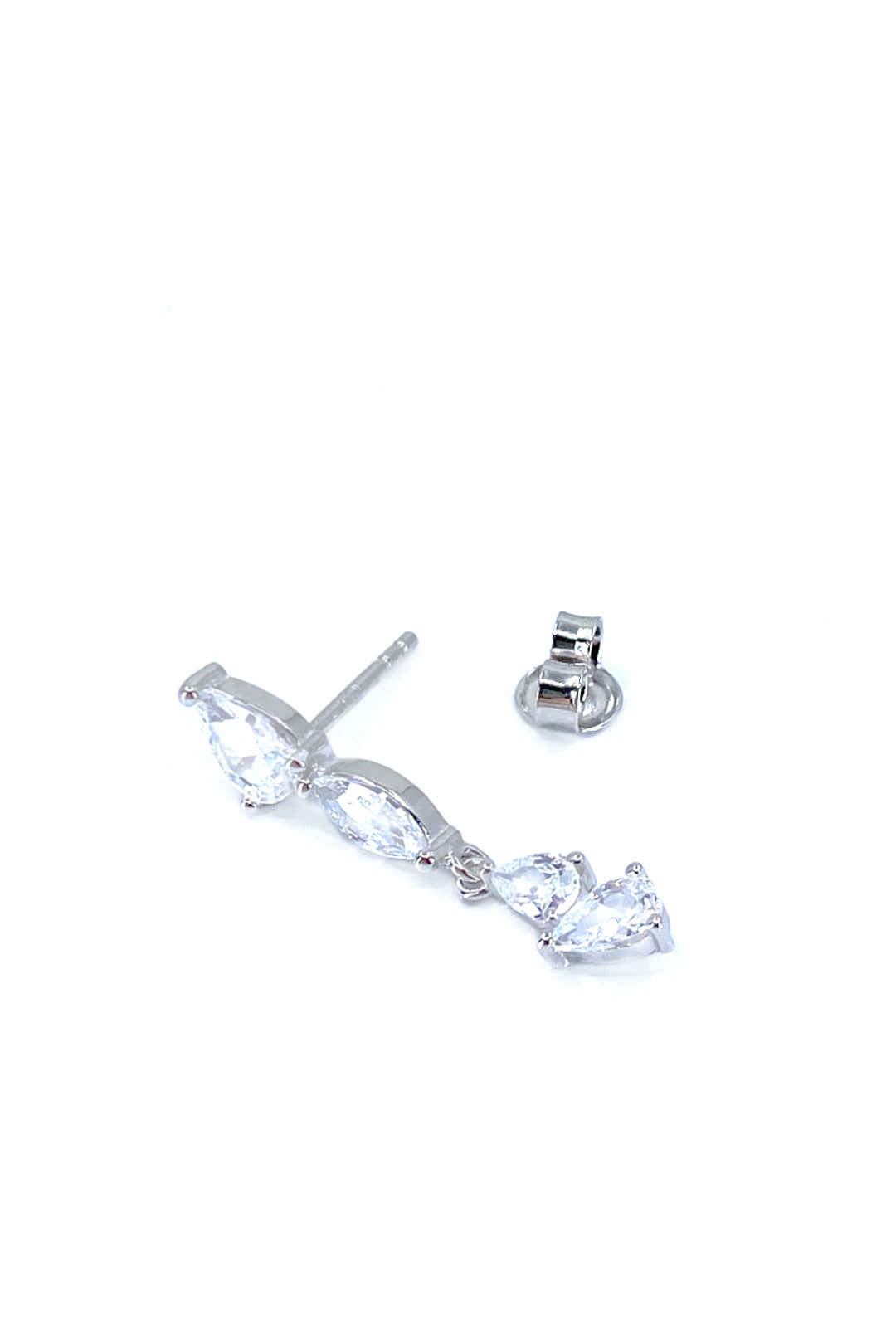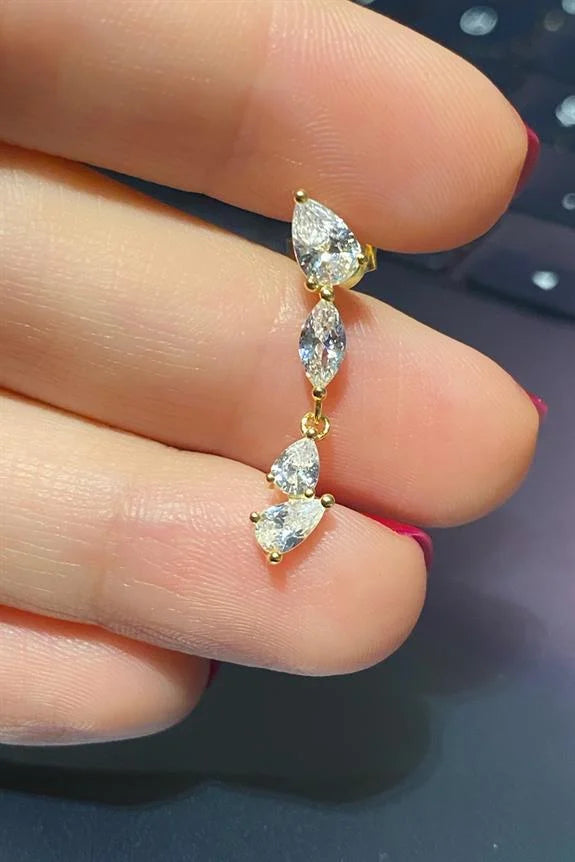 Damla Markiz Dört Taş Sallantılı Gümüş Çivili Küpe